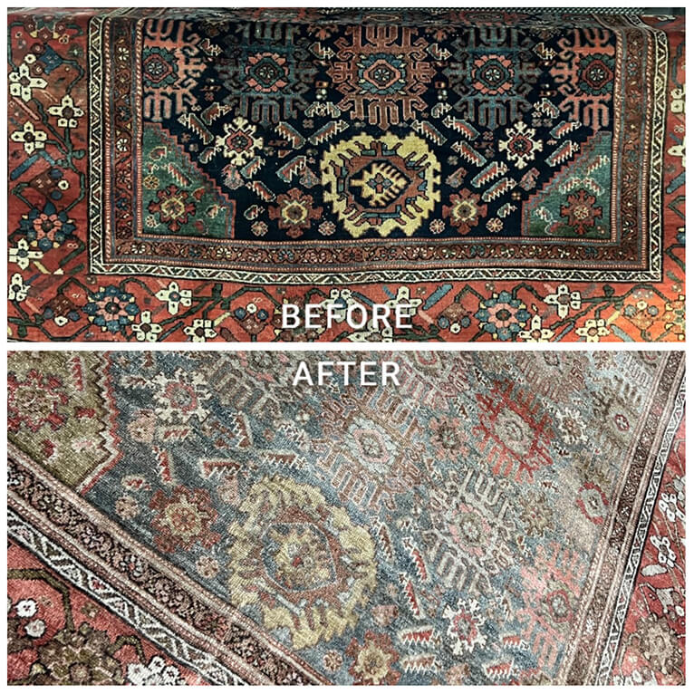 A. The white wash finish is ideal for natural fiber rugs such as wool, cotton, and silk, as well as for Persian, Turkish, Moroccan, and vintage rugs. However, it may not be as effective on synthetic or polyester rugs. Our specialists can assess your rug to determine if it’s a good candidate for the white wash process.